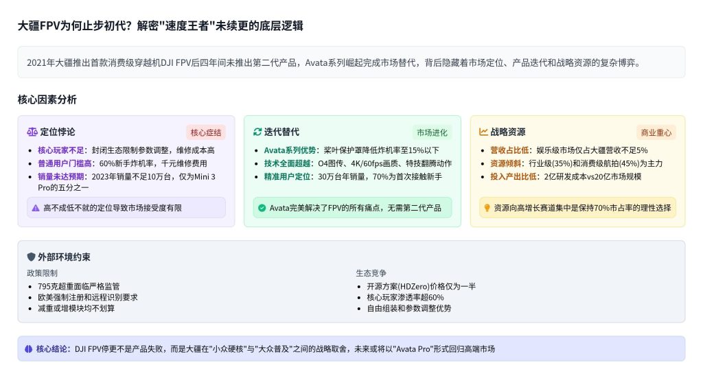 一款产品的存续,从来不是孤立的商业决策,而是企业战略资源分配的结果。DJI FPV的停更,本质上是大疆将研发资源向行业级市场和核心消费级赛道倾斜的必然选择。